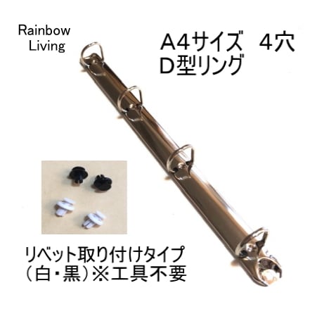バインダー金具 A4 4穴 D型 16D (両面、片面カシメ付き) リング 金具