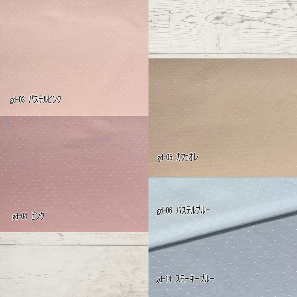 人気のグログランドット生地15色の生地見本です。